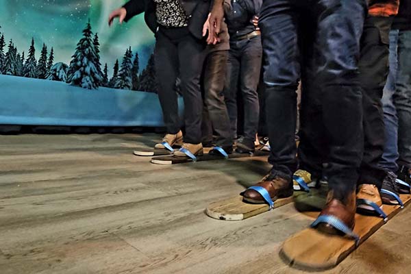 Bind de ski’s onder en werk samen met je team om zo snel mogelijk de finish te halen. Een hilarische uitdaging waarbij coördinatie en samenwerking centraal staan.